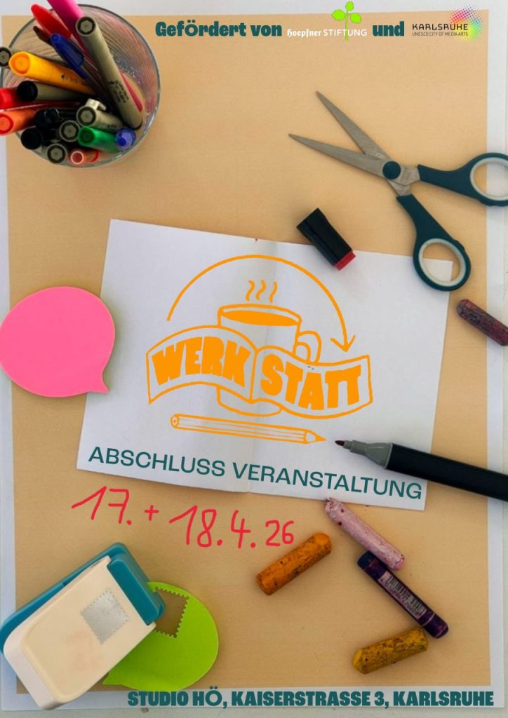 >>> Feb. – Apr. 2026: Di. – Do.,15.00h – 19.00 Uhr: sprint2@studiohö: Unser VERLAG – Zine Werkstatt mit Rosa Deutsch, Lilly Oehler & Bingzhen Zhou (Stipendiat:innen des sprint2-Stipendiums für Studierende)